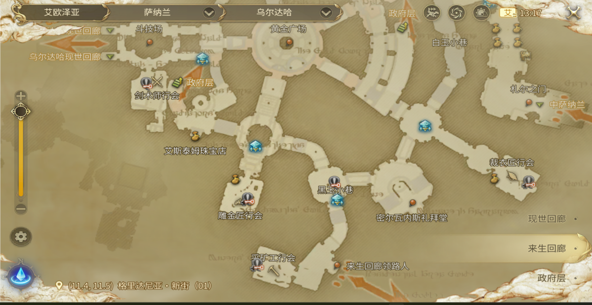 乌尔达哈来生回廊[来生回廊] (X: 10.5, Y: 13.1)雕金匠行会