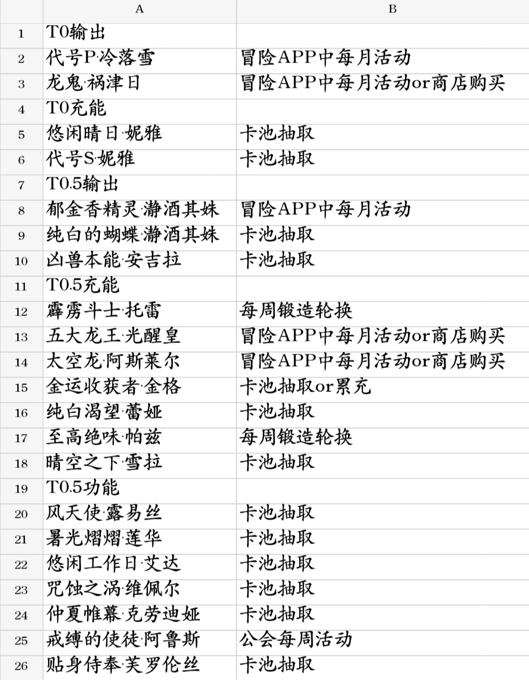 本次为大家带来的是百分之一的2025全新角色强度排行,汇总了各类型角色的强度T度榜,并附上强力角色的获取方法,方便回坑的玩家进行配队和角色获取。