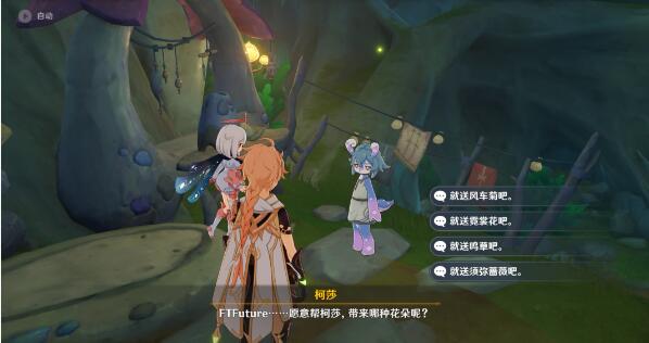 2、柯莎询问愿意帮她带来哪种花时这里可以根据自己的喜好选择,选择后需要提交4朵。