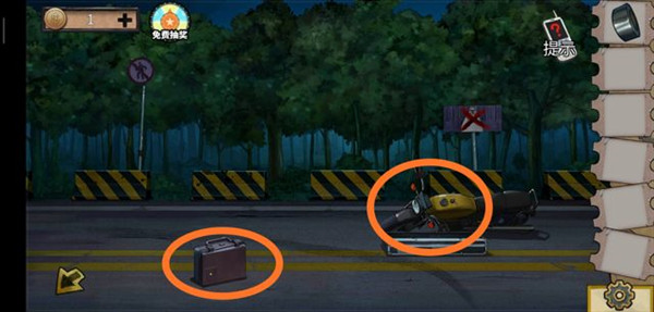 8、然后我们点击树,拿到根断掉的袖子获悉密码4901。去马路上用钥匙打开箱子获得铝粉和毛刷,将铝粉和毛刷组合。点击摩托车钥匙口即可获得发光钥匙扣,点击箱子输入密码4901,需要一个指纹。