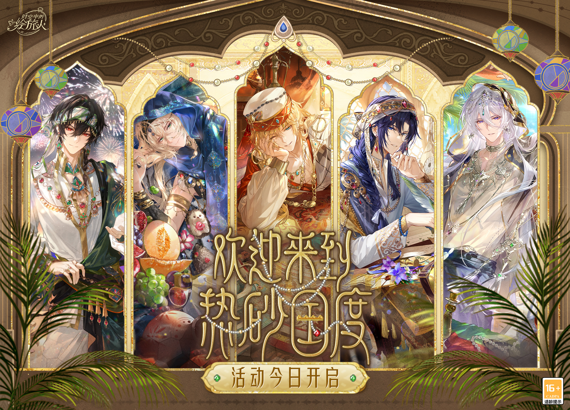 拥有全部5个「欢迎来到热砂国度」男主签名,可在活动界面点击[热砂献礼],免费领取活动专属开屏。