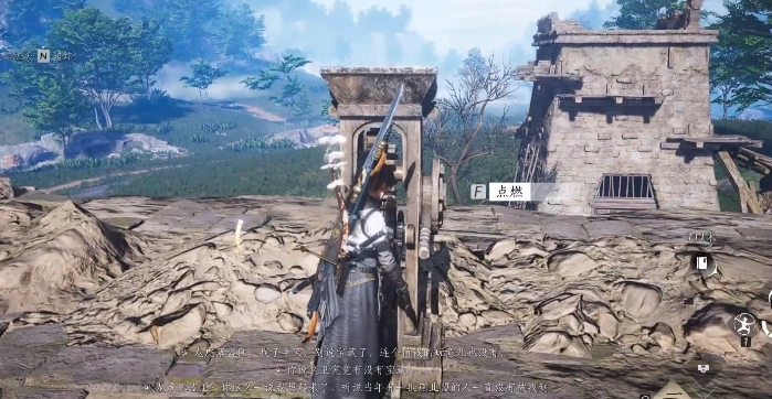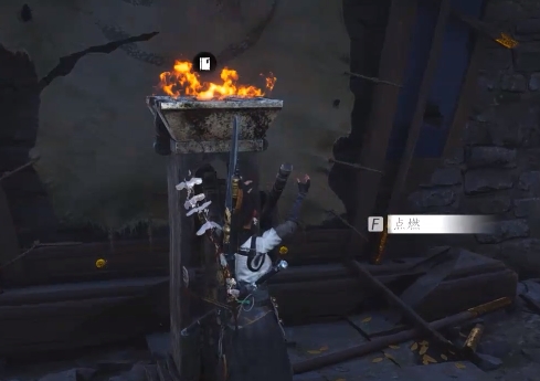 上楼梯,前面又有个火把,点燃后触发剧情