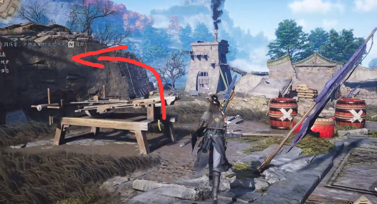 在正前方的城门处有个npc,和他对话,然后可以接取任务并获得线索一