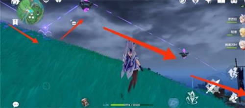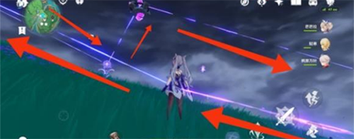 1、首先玩家要先将两个继电石都收集并且放置好;之后去触碰左右两边带电元素的花,使得自身附着电元素可以激活中转站。
