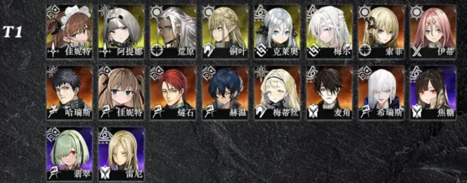 2、T0.5:炽锋、荆棘、涅莫、商离、月虹、卡罗尔、薇薇安、雷隼、库尔特