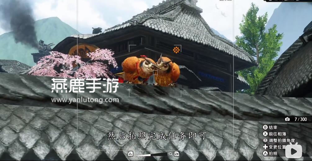 3、最后即可对着飞到屋檐上的福木兔拍照,按A键是拍照。