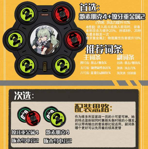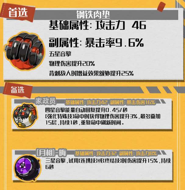 五星音擎【钢铁肉垫】可以提供暴击、攻击力以及物理伤害加成,非常适合可琳使用。