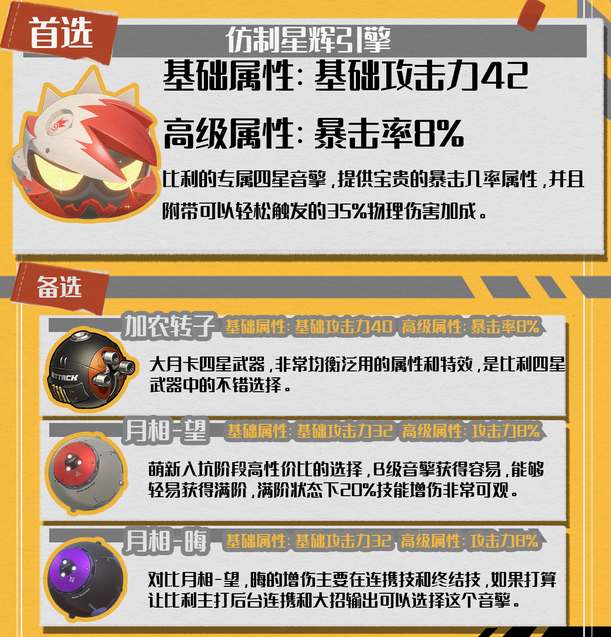 四星专属音擎【仿制星辉引擎】,提供暴击几率属性,还福袋物理伤害加成,比例可以轻松触发这个效果。