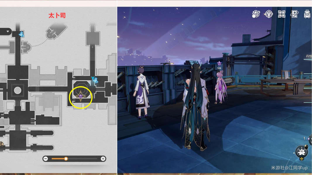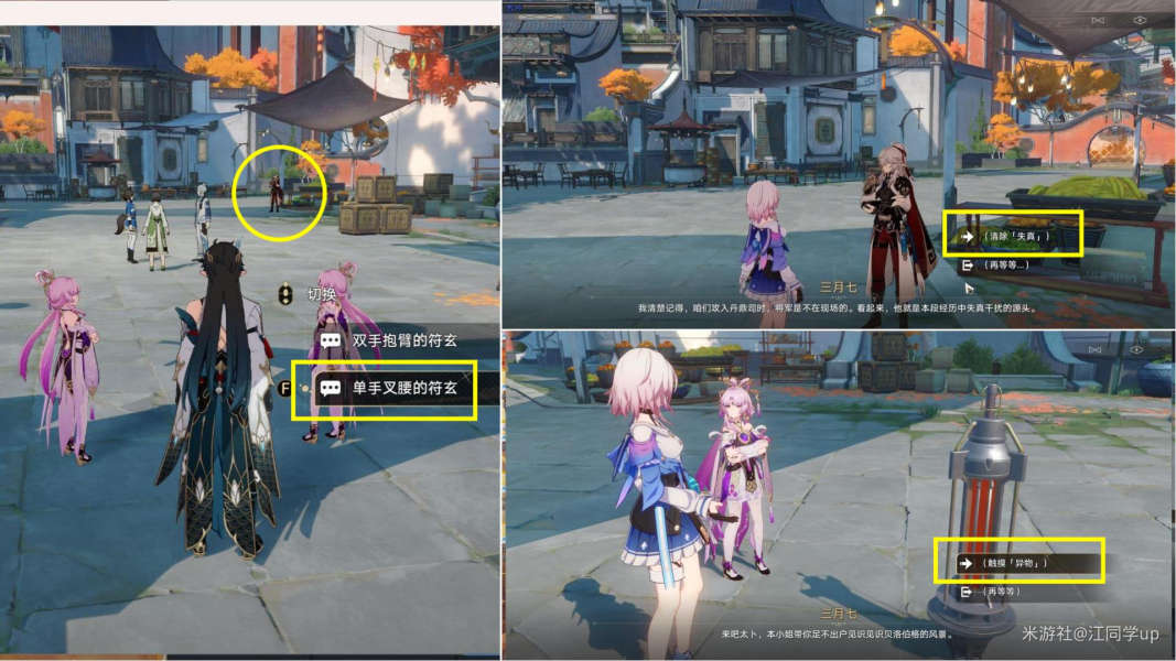 2、接着需七五昂太卜司找到符玄对话,然后需去下图位置找到符玄和三月七对话;