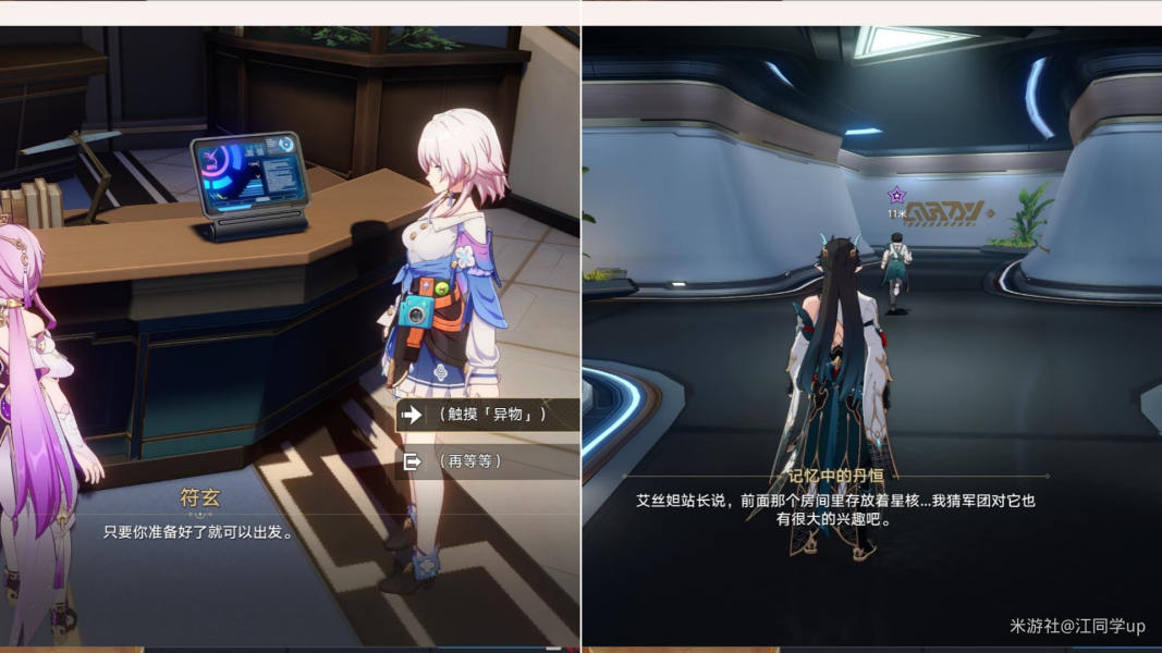 4、随后跟踪任务来到下图位置并选择触碰异物,之后接着跟着丹恒走,接着它会消失;