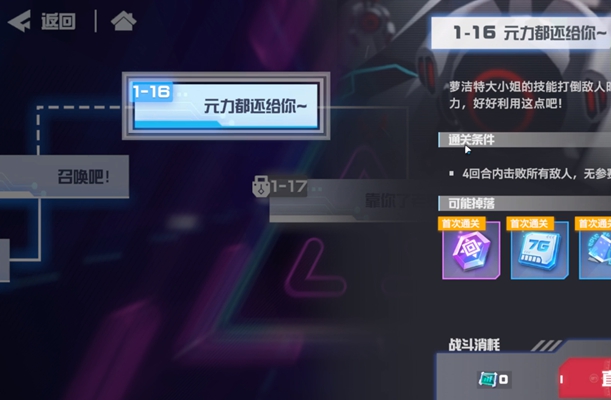 凹凸世界解密副本1-16的要求玩家4回合内击败所有敌人,无参赛者失去链接。这一关会比较难打,要注意远程输出的技能。那么这个任务要怎么做呢?下面小编就向大家带来凹凸世界解密副本1-16原力都还给你通关攻略,赶快来看下吧。