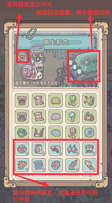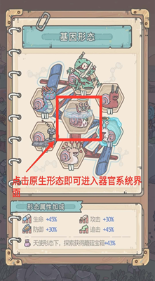 2、点击中间原生的蜗牛形态就能进入蜗牛器官系统界面。