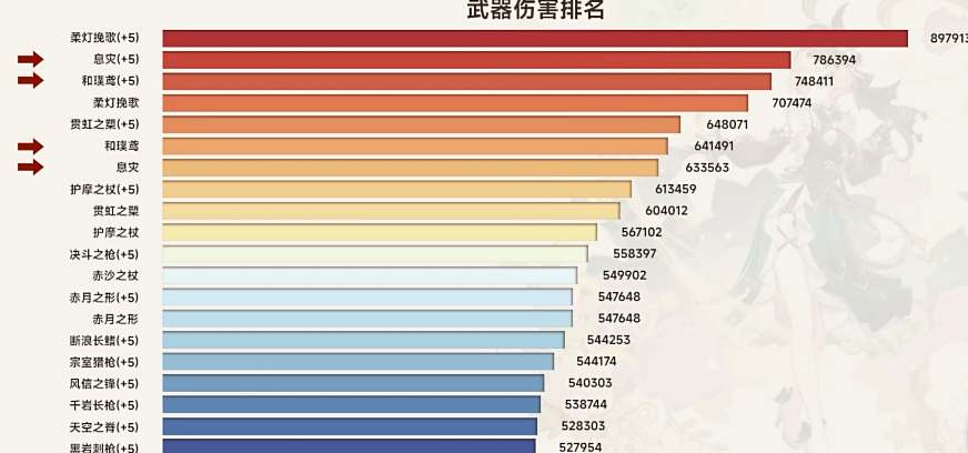参考下图所示,除了专武之外五星武器还有灾息、和璞鸢、贯虹之槊、护摩之杖等五星武器的表现也十分优秀。