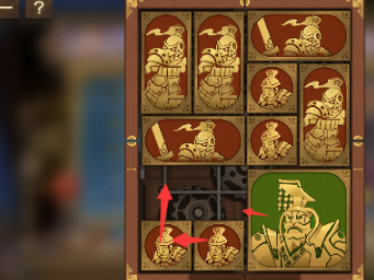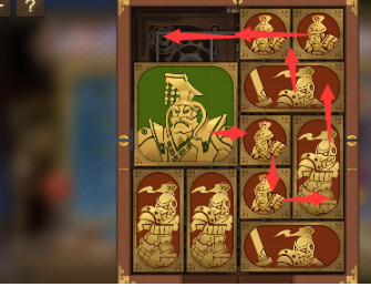 7、左下角的长方形向上移动,其旁边的两个长方形都向左移动,正方形竖直摆,将军向下移动。