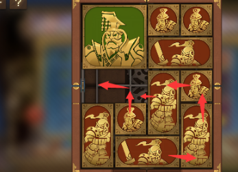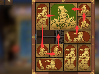 3、中间的正方形向右移动到底,左下角右数第二个长方形向上移动,左下角的长方形向右移动,将军下方的长方形向下移动。