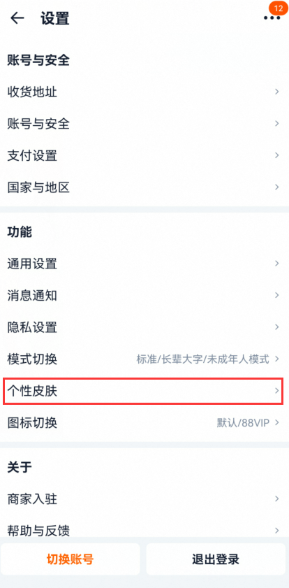 3、在设置页中找到「个性皮肤」