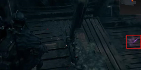 3、接着玩家需要从楼梯下去,随后即可看见骷髅旁边的紫色光芒;