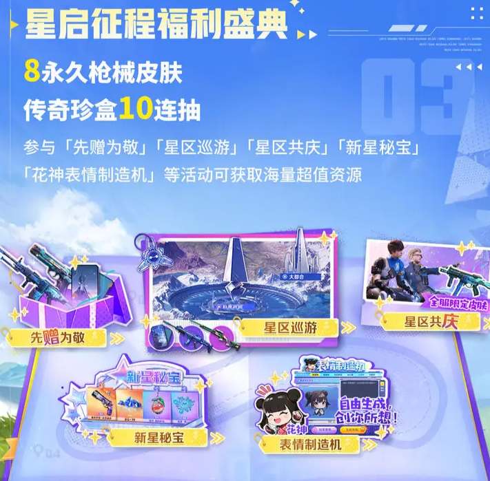 1、公测当前登录游戏的玩家,可以通过游玩星区领取10位星能英雄角色,还有32个永久枪械皮肤等你来解锁。