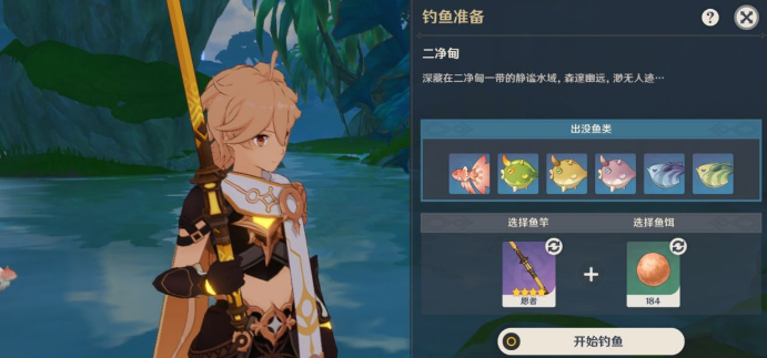 Tips:钓鱼前先去鲁梅拉处换紫色的鱼饵[甘露饵]。