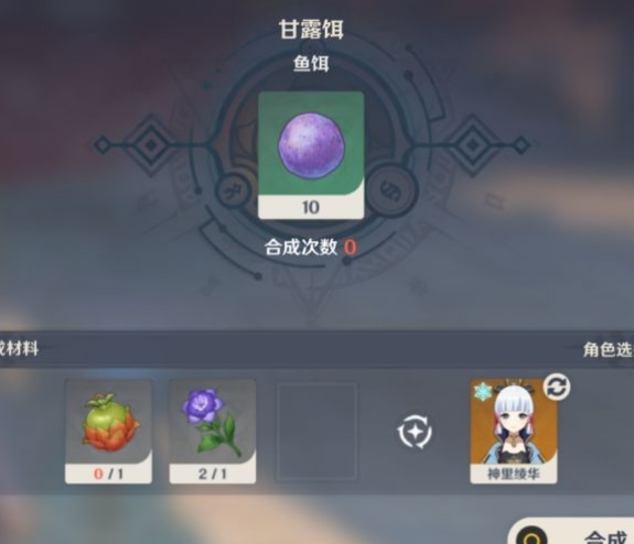 鱼饵合成材料:一个香辛果和一朵须弥蔷薇。