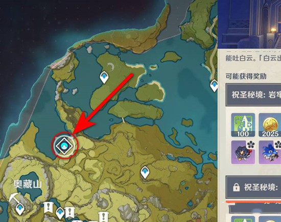 2、这里有一个祝圣秘境,靠近大门后点击华池岩岫交互按钮。