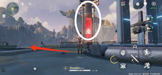 4、随后回到开始的中型信标,向下图圈住的地方移动。
