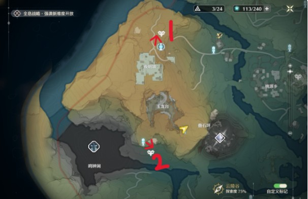 鸣潮云陵谷飞猎手在哪里?一共有两只飞猎手,一只在乌龟小信标旁,传送到这儿后往左走,再飞下去的位置,另一只则是在夜明坡传送点右边石头上。