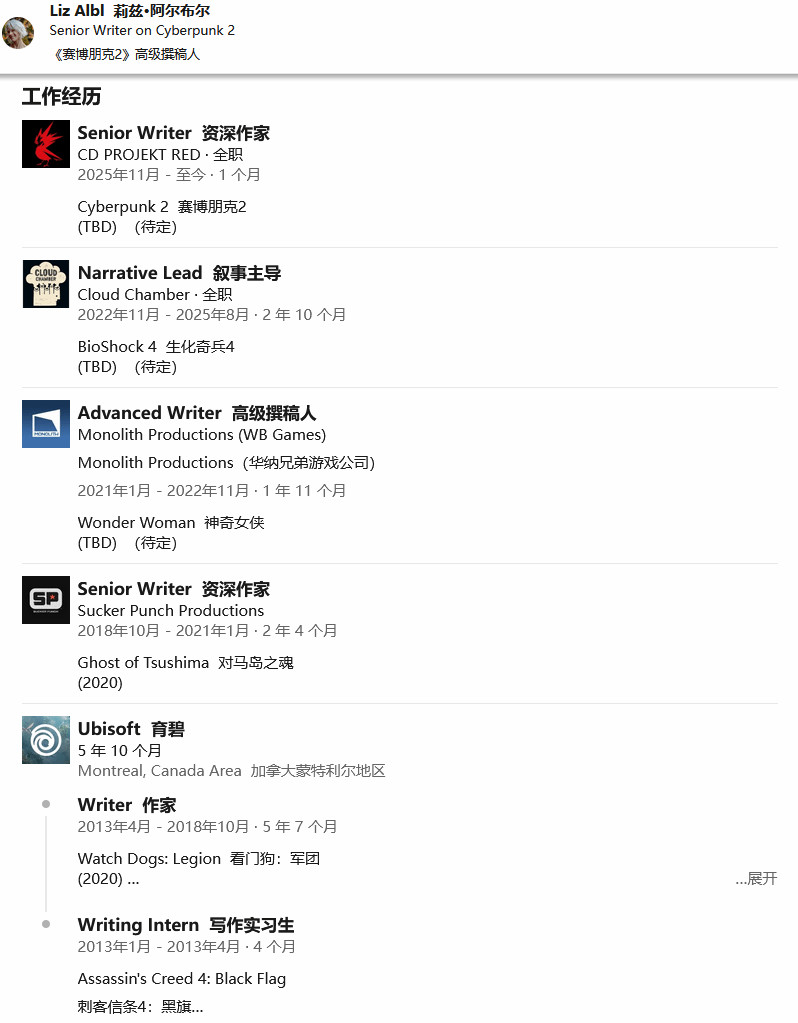 需要特别注意的是,虽然Albl的领英页面和CDPR内部都使用"赛博朋克2"这一称呼,但官方曾明确表示这仅是一个临时代号,并非游戏的最终正式名称。这位资深叙事设计师的加入,无疑将为CDPR的赛博朋克宇宙注入新的创作活力。