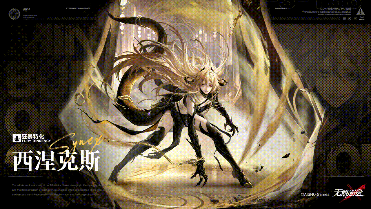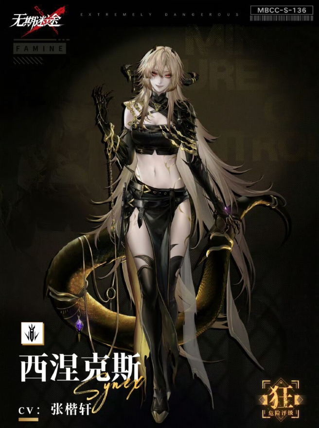 【獠牙与镣铐】:西涅克斯幻化出巨大的双爪进行攻击,每只巨爪对单侧范围内所有敌人造成自身攻击一定比例的真实伤害,挤压敌人至身前三格,并且使敌人【眩晕】,持续一定时间,同时附加【裂痕】标记。