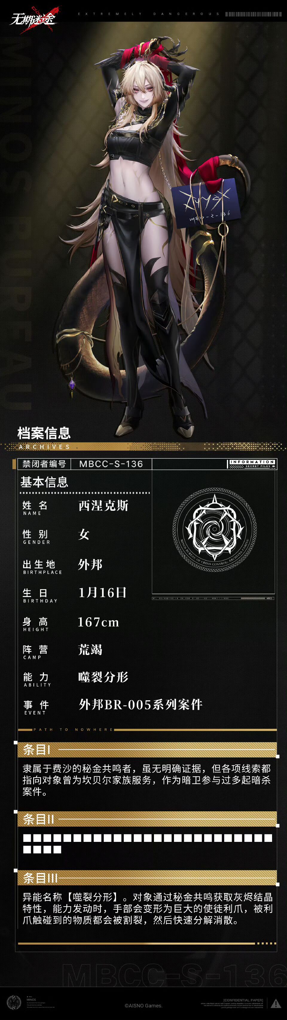 *条目I:隶属于费沙的秘金共鸣者,虽无明确证据,但各项线索都指向对象曾为坎贝尔家族服务,作为暗卫参与过多起暗杀案件。