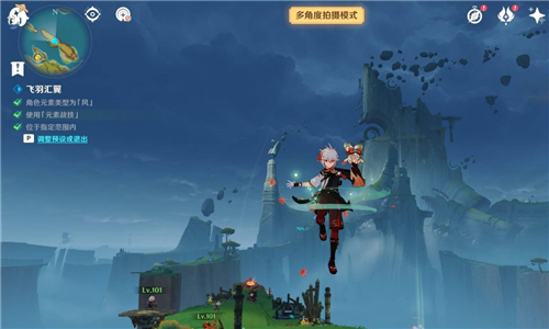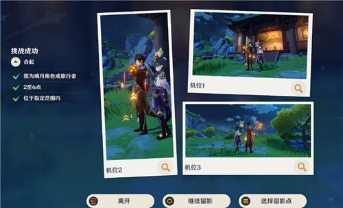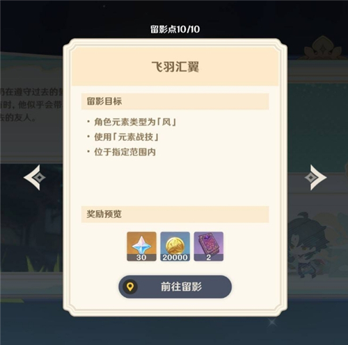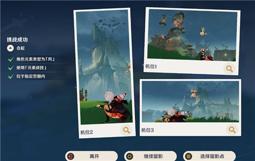 切换出一名风元素角色,与留影点互动,根据喜好进行调整,然后可以在界面左侧查看是否符合留影要求。
