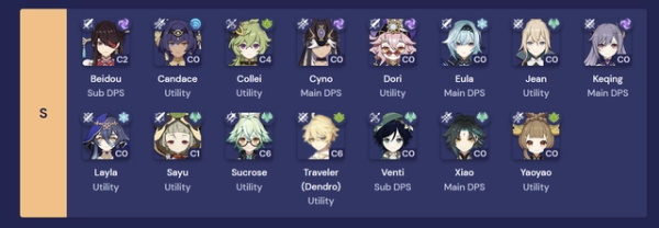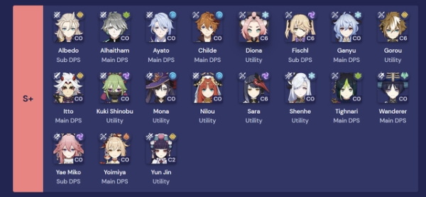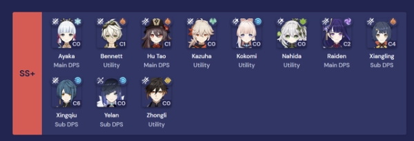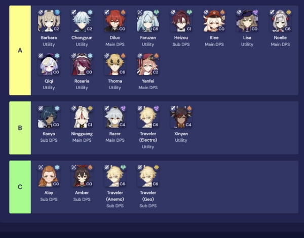 1、T0:魈、优菈、神里绫华、达达利亚、可莉、迪卢克