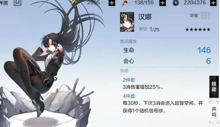 2、意识共鸣搭配推荐:六精确攻击高、六核心被动;