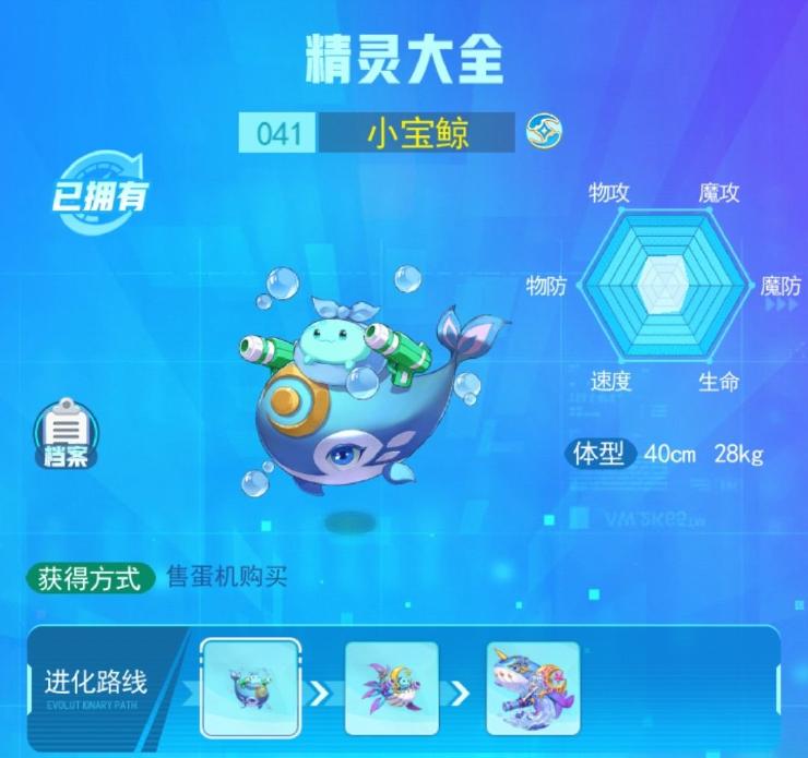 1、小宝鲸是水系精灵,水系大部分都是偏向防御的;