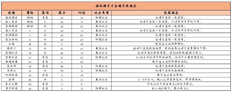 小宝鲸技能表:
