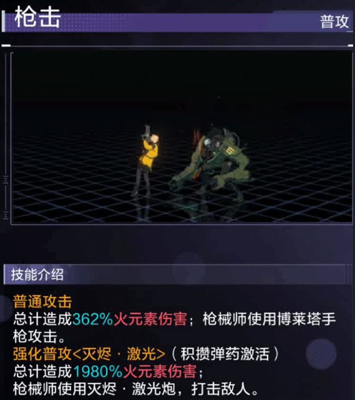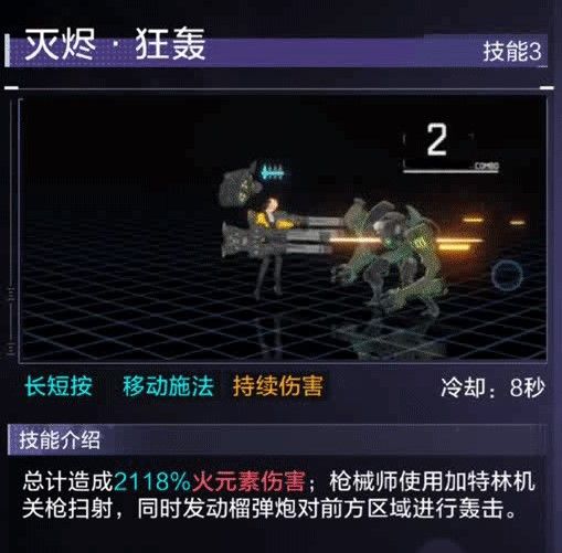 4、灭烬·狂轰,伤害技能,用机枪扫射前方的敌人