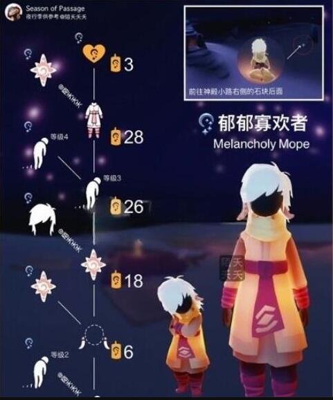 光遇郁郁寡欢者先祖位置在哪?光遇郁郁寡欢者先祖兑换表是什么?光遇里面大家都在找郁郁寡欢者先祖的呢,那么这个也是夜行季里面的一个先祖了,要是知道位置以后我们直接可以找到他去兑换就可以了,需要了解下这个兑换表。