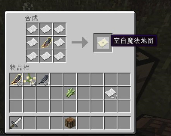 7、把魔法地图核心放在工作台中间,边上放八张纸合成暮色森林地图。