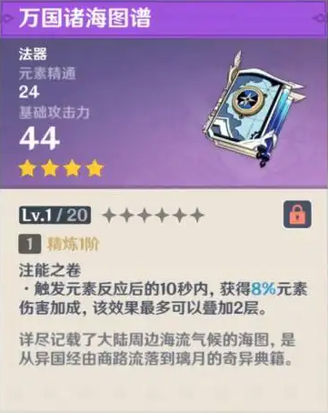 以上便是小编为大家带来的原神法器万国诸海图谱满级属性介绍,相信现在你已经了解到了万国诸海图谱的属性,更多武器属性敬请关注七匣子手游下载中心。