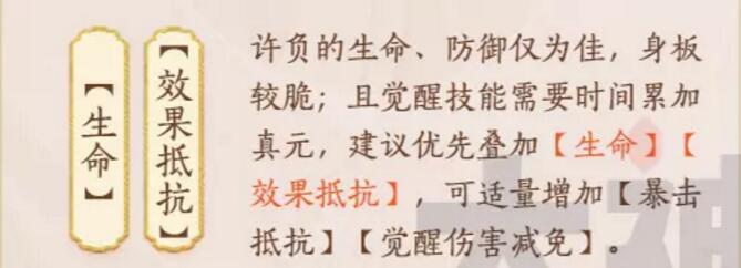 许负本身定位辅助,强度一般,且没有太过于特殊出色的技能,属于万用位置与前期过度卡牌,队伍搭配与适用范围普遍,无特殊需要。
