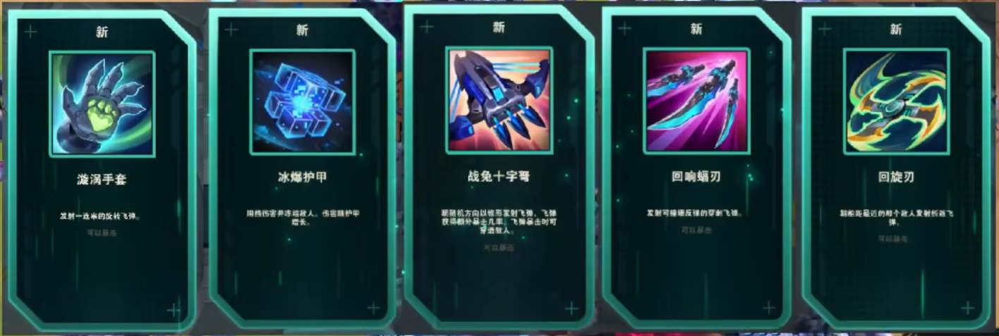漩涡手套、冰爆护甲、战兔十字弩、回响蝠刃、回旋刃。这五个技能中任选三个即可。