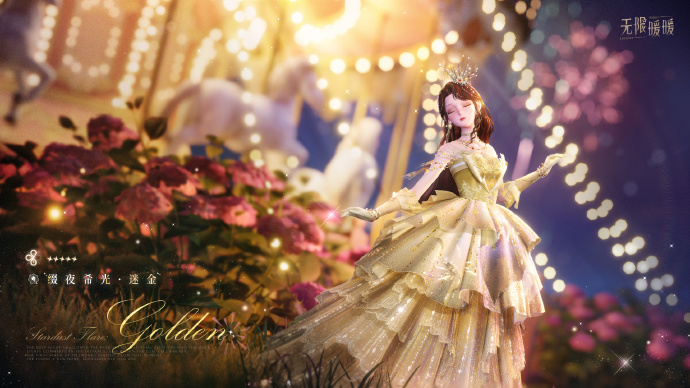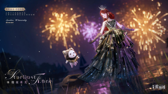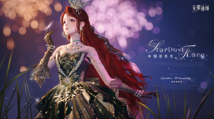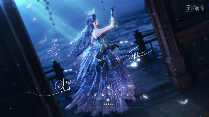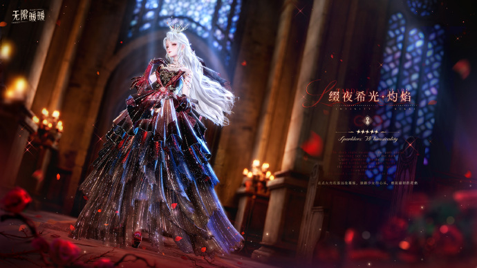 无限暖暖的1.2版本新增一套五星套装,以庆典为主题的礼服,主属性为典雅,在战力或者移动的时候身后都会有灿烂的花焰。