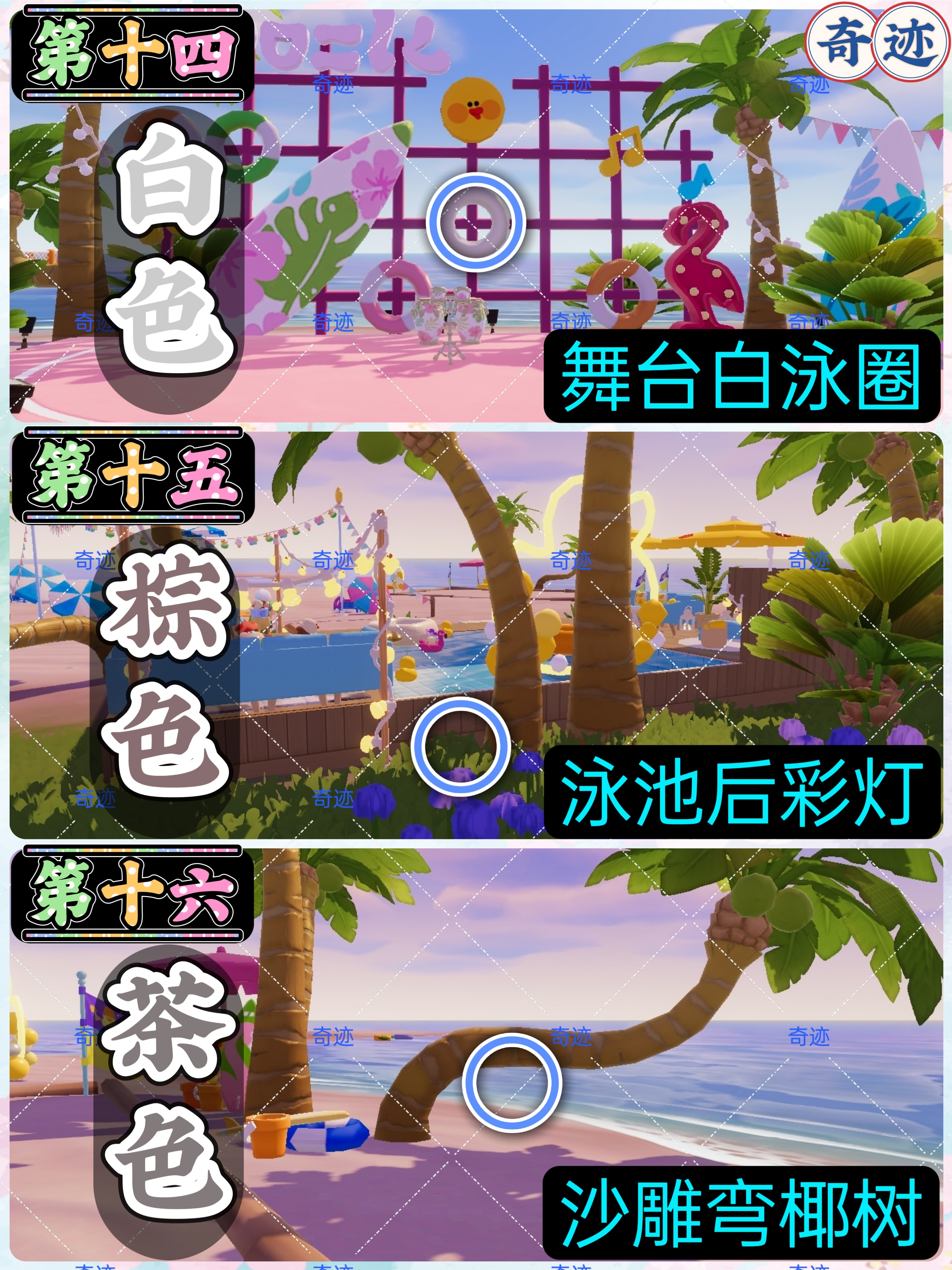 ▶︎棕色:粉色城堡左边泳池后面彩灯右下角