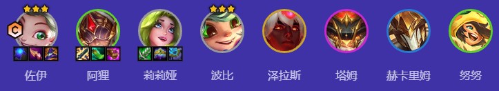 佐伊、阿狸、莉莉娅、波比、泽拉斯、塔姆、赫卡里姆、努努