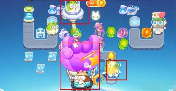 3、然后我们还会遇到热气球兔兔和UFO兔兔,注意用手划破热气球兔兔的气球即可,如图所示。