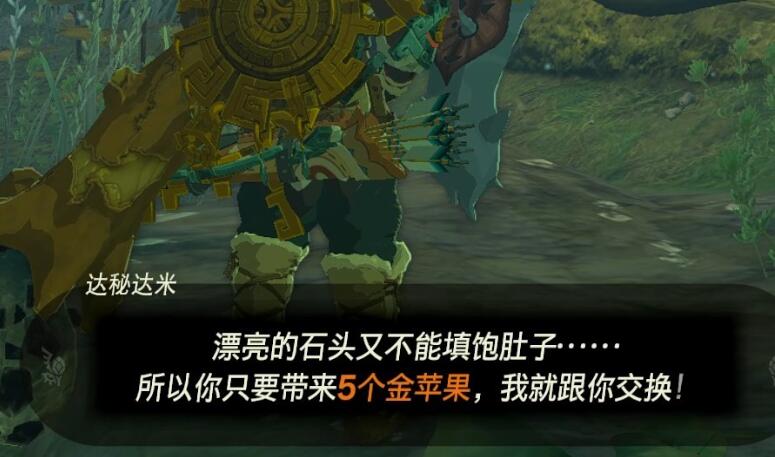 2、与前方的NPC对话,用5个金苹果兑换可以获得水晶。