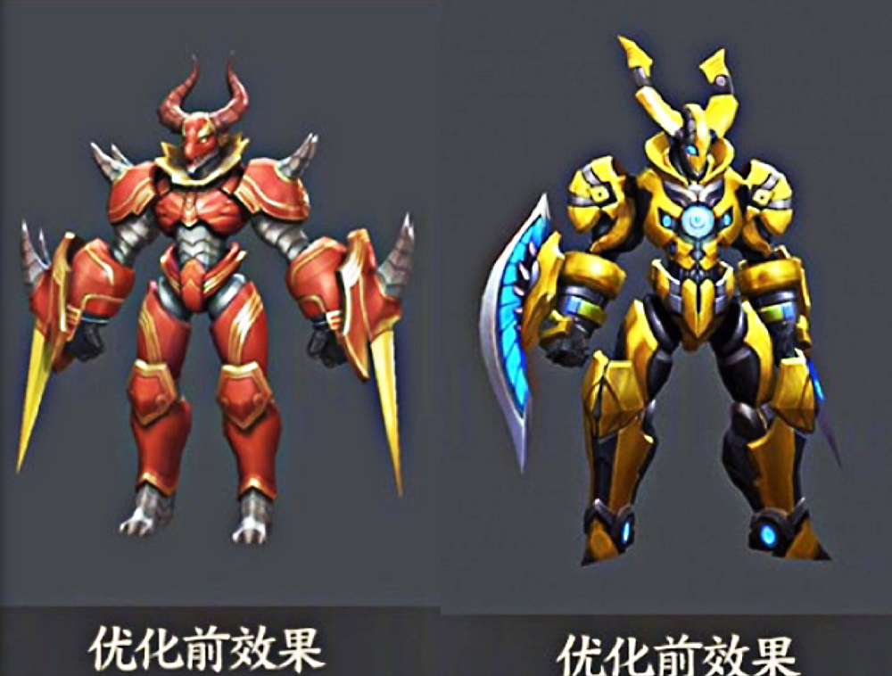 墨子龙骑和金属风暴在优化前的建模实在过于敷衍对不起他这2888点券的价格,很多玩家称龙骑士就是小龙虾,金属风暴是小蜜蜂,但是经过优化之后,龙骑士变成了真龙,金属风暴也变成了真正的机甲。
