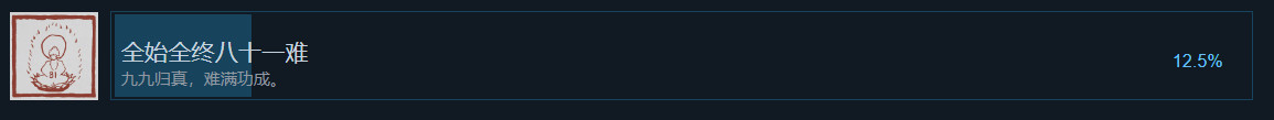 不过,若要达成全成就,难度就大大提升了,相应地,成功解锁全成就的玩家比例也较低。数据显示,仅有12.5%的玩家获得了“全始全终八十一难”成就,这也从侧面反映出游戏中隐藏内容与高难度挑战的丰富程度。