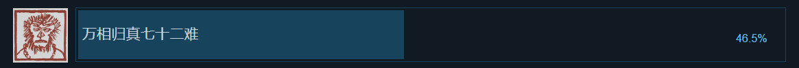 从Steam成就页面的数据来看,这款游戏展现出了不俗的吸引力与玩家粘性。目前,已有46.5%的玩家成功通关游戏,解锁了“万相归真七十二难”这一成就。要知道,《黑神话:悟空》的关卡设计颇具挑战性,在这样的情况下,仍有近半数玩家坚持不懈地完成了主线故事,足见游戏的魅力。