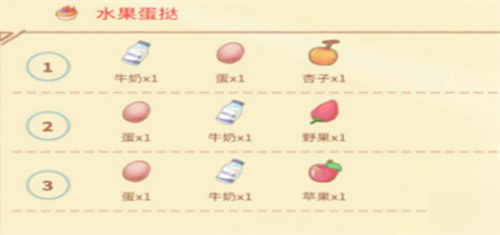 1、水果蛋挞是由牛奶 、鸡蛋 、以及任意水果在烹饪锅中合成。
